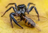 Dem Opfer bleibt kaum Zeit zu reagieren, das Gift macht es beinahe sofort bewegungsunfähig, was jeden Fluchtversuch unterbindet. Ein weiterer wichtiger Faktor der das Jagdverhalten der Springspinnen erst ermöglicht. Die Beute kann dabei durchaus viel grösser sein als die Spinne selbst.