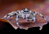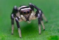 Jumping spiders have probably the best sense of vision among arthropods, what is essential for hunting, navigation and courtship. With their characteristic oversized principal eyes they can detect even smallest details. The three secondary pairs of eyes are sensitive for motion and brightness and give the jumping spider almost a 360° field of view.